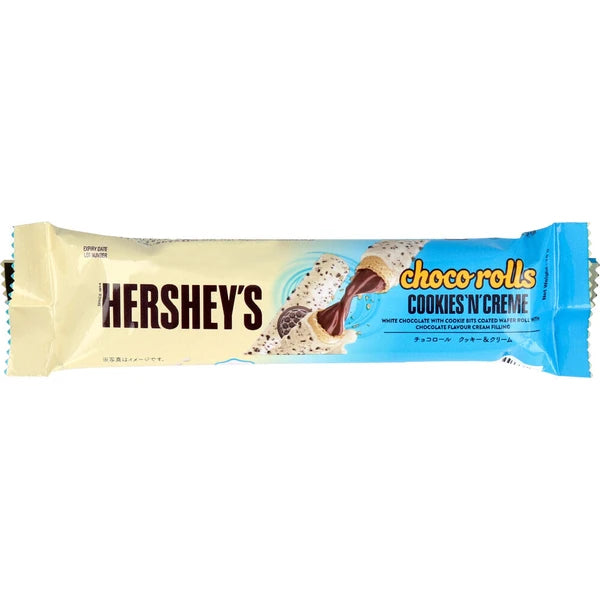 ●用大量的巧克力醬包裹在威化餅中,並用Hershey的超人氣餅乾&奶油口味塗上,這就是「Hershey 巧克力卷 餅乾&奶油」。